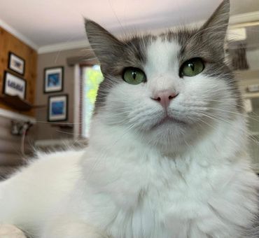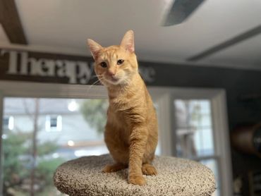 "I am as debonair as a cat can be. I love all who meet me, and all who meet me, love me. I would have been adopted 20 times but I preferred being a therapy cat and residing her at Therapy House. I cannot get enough head bumps or belly rubs. I am a Therapy House favorite and will likely greet you at the door."
