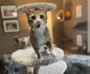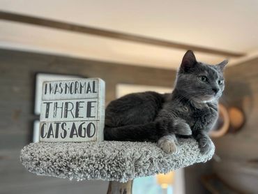 All of the facility cats at Therapy House were once a cat taken in by Créme de la Créme Animal Foundation. They were an unwanted animal that found themselves within the animal control system. Their histories include neglect, abuse, found as a stray, having pre-existing conditions (medical or temperament issues), and/or part of overpopulation in a specific county. They are all unique, you will see if you meet them! Each one of them have triumphed their pasts and look onto the future like champs.
