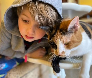 Our cats are all adults, ranging from young adults, to a few who are almost golden. On occasion, we have adoptable cat who are awaiting a forever home. Visit our Adoptable Cats.
